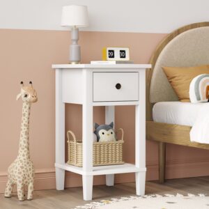 Kids White Wooden Bedside Table with Drawer and Shelf – Marlowe