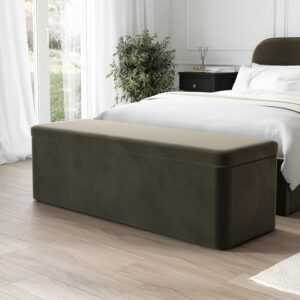 Olive Green Velvet Ottoman Blanket Box – Pippa