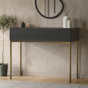Black Dressing Table with 2 Drawers and Gold Legs – Zion