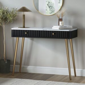 Black Marble Top Fluted Dressing Table with Drawers – Lucia