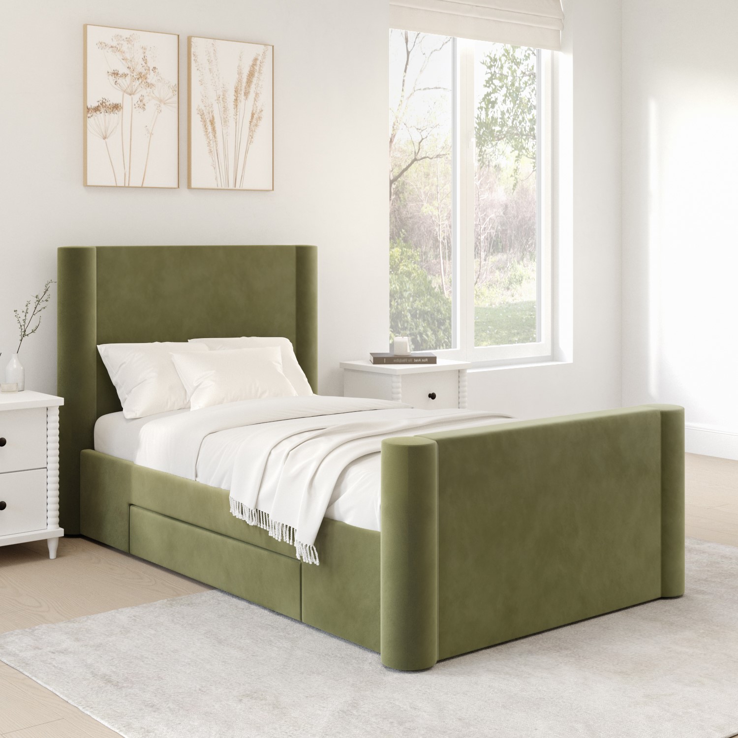 Green Velvet Single Bed Frame with Storage Drawer – Isadora