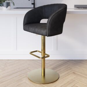 ALMOST PERFECT – Curved Black Faux Leather Adjustable Swivel Bar Stool with Gold Base – Runa