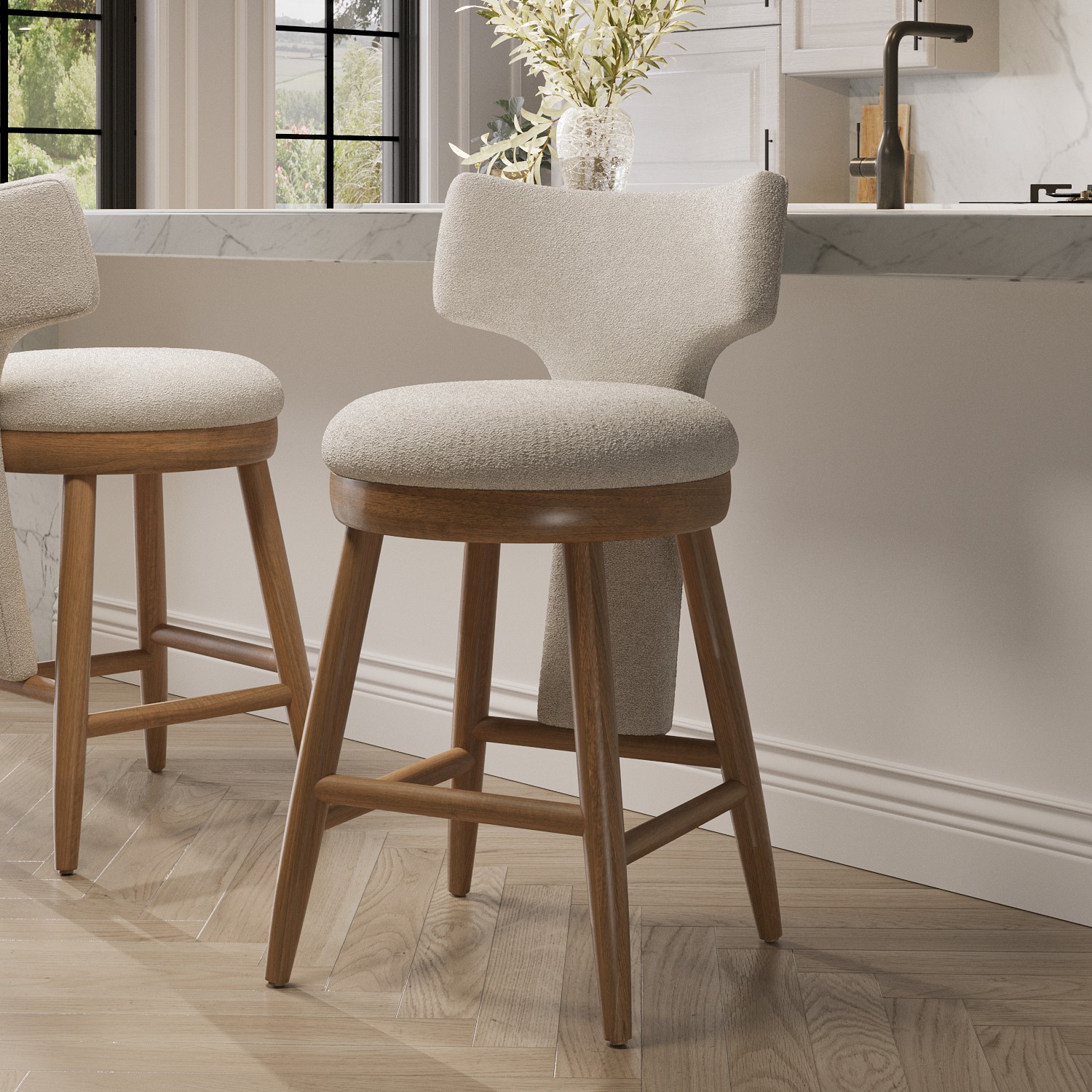 Beige Boucle and Solid Oak Kitchen Stool with Back – Nyla