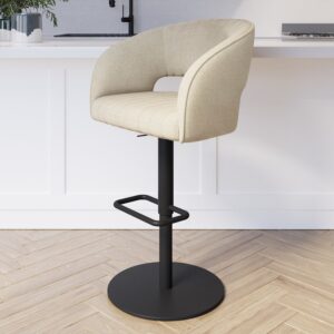 “Curved Beige Upholstered Adjustable Swivel Bar Stool with Black Base – Runa” has been added to your cart. View cart