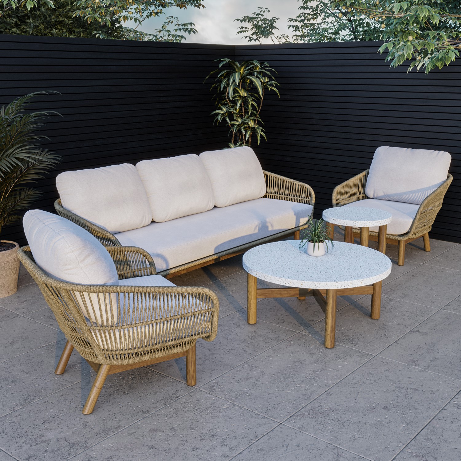 5 Seater Rope and Acacia Garden Sofa Set with Terrazzo Coffee Tables – Aspen