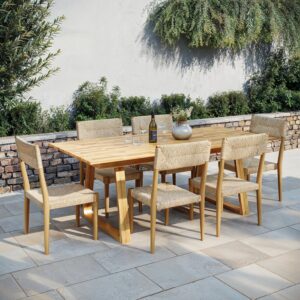 • Modern 6-seater Acacia garden dining set with large table and chairs