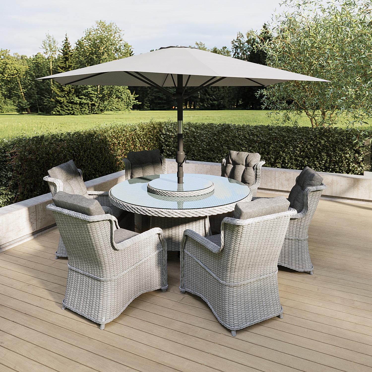 6 Seater Grey Round Rattan Garden Dining Set with Lazy Susan and Parasol – Aspen