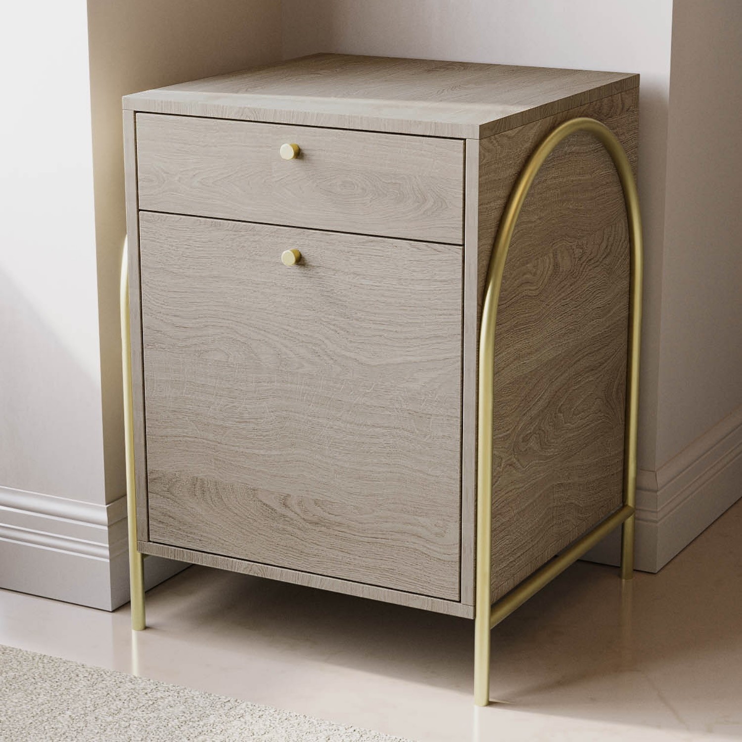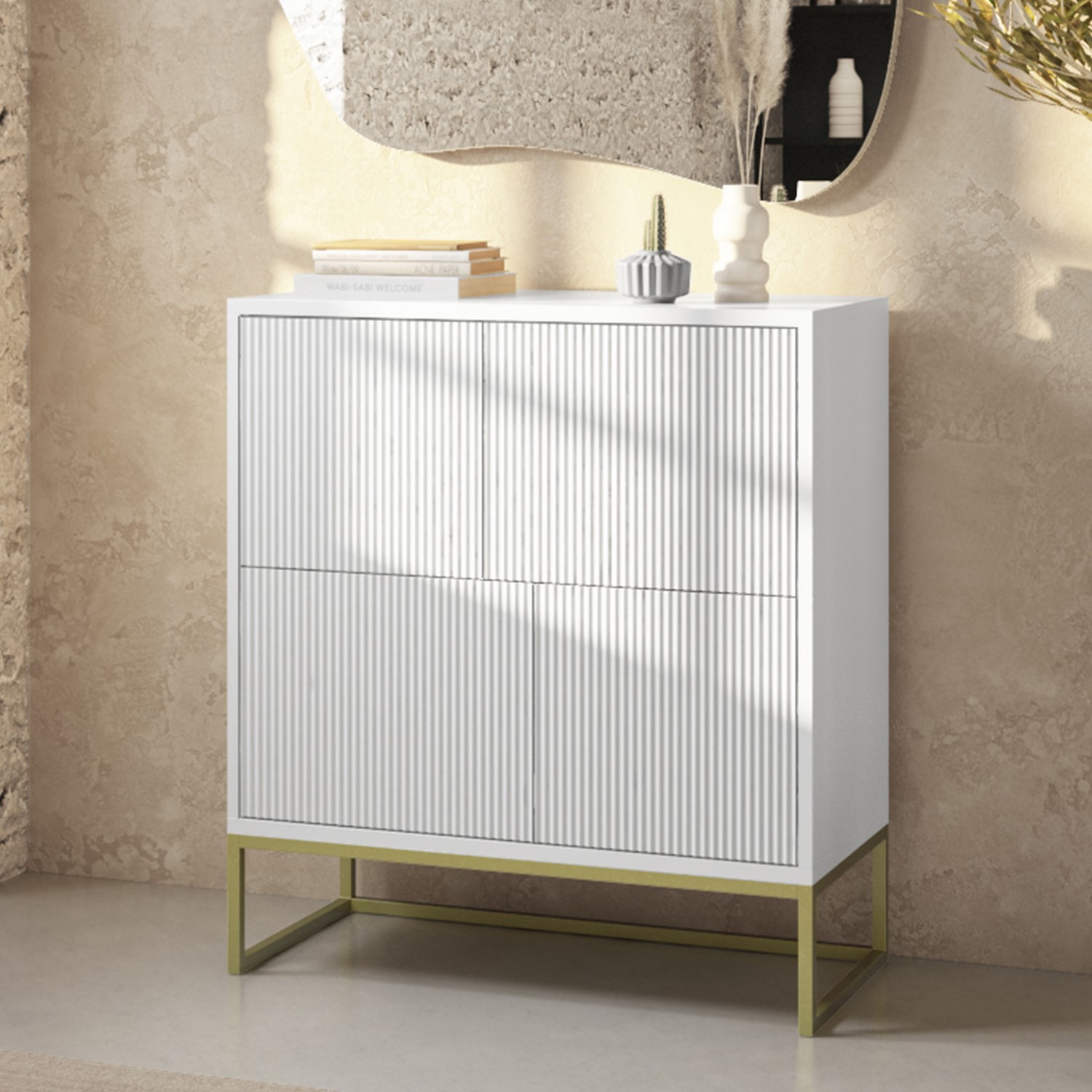 White and Gold Ribbed Office Storage Cabinet – Larsen