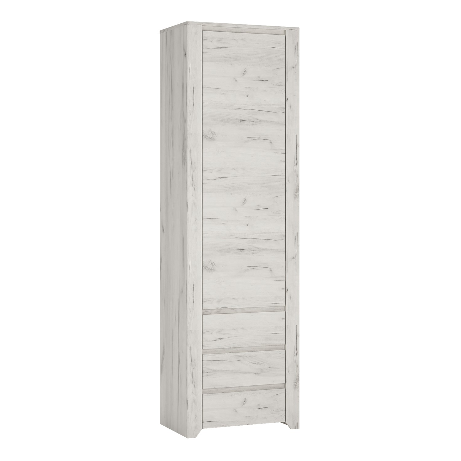Angel 1 Door 3 Drawer Narrow Cupboard in White Oak