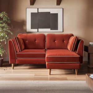 Burnt Orange Velvet Piped 3 Seater Chaise Corner Sofa – Cohen