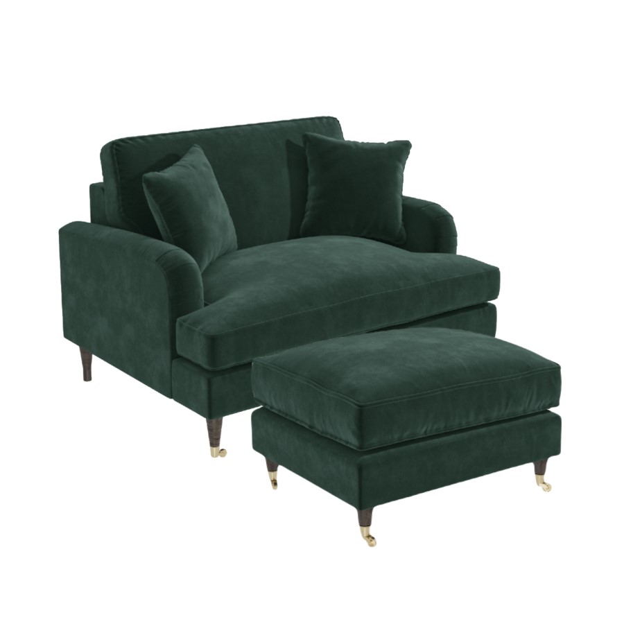 Dark Green Velvet Sofa and Footstool Set – Payton