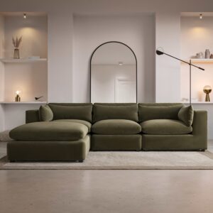 Large Khaki Green Velvet Reversible 4 Seater Chaise Corner Sofa – Hudson
