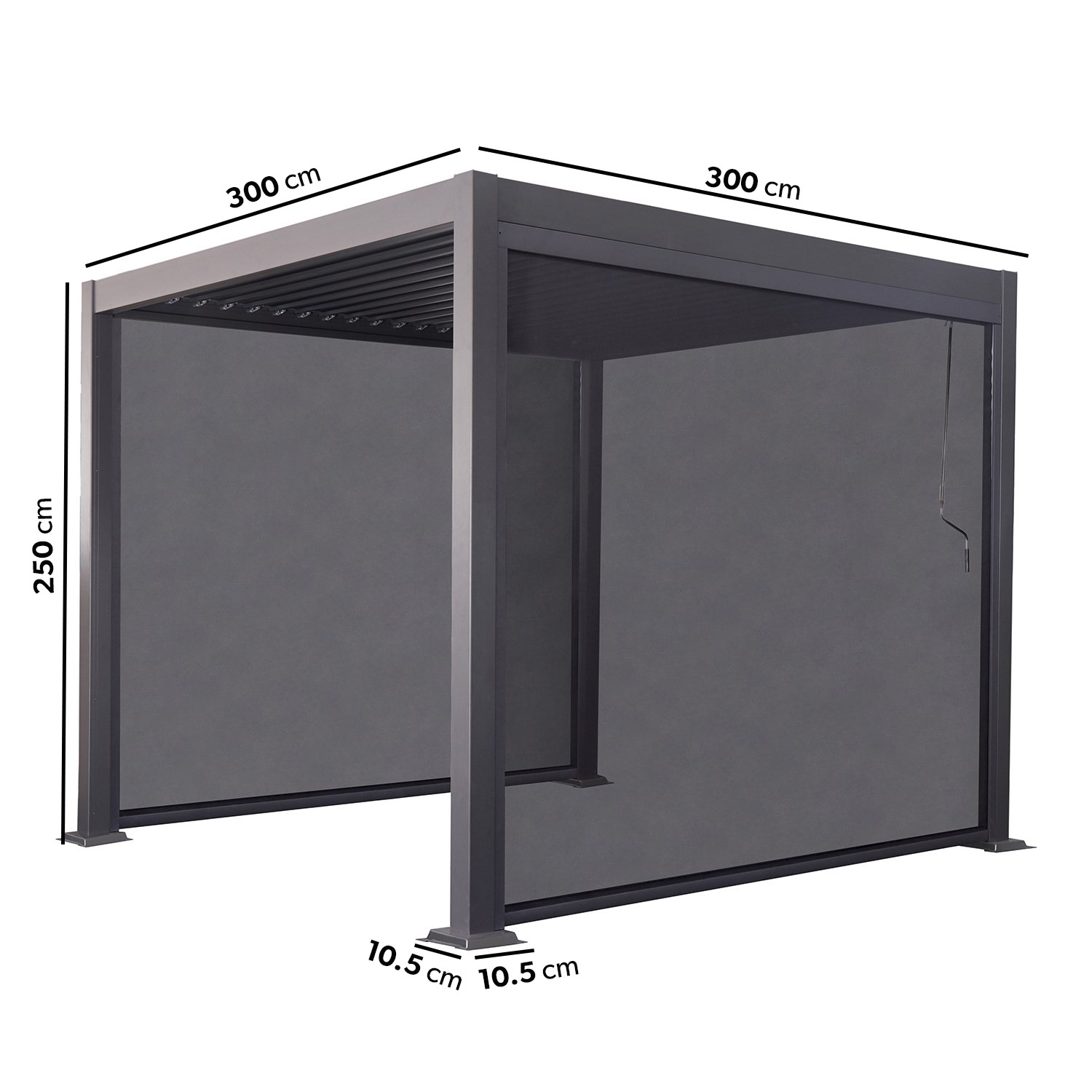 3x3m Heavy Duty Charcoal Aluminium Pergola with Adjustable Louvered Roof & 2 Textilene Side Panels