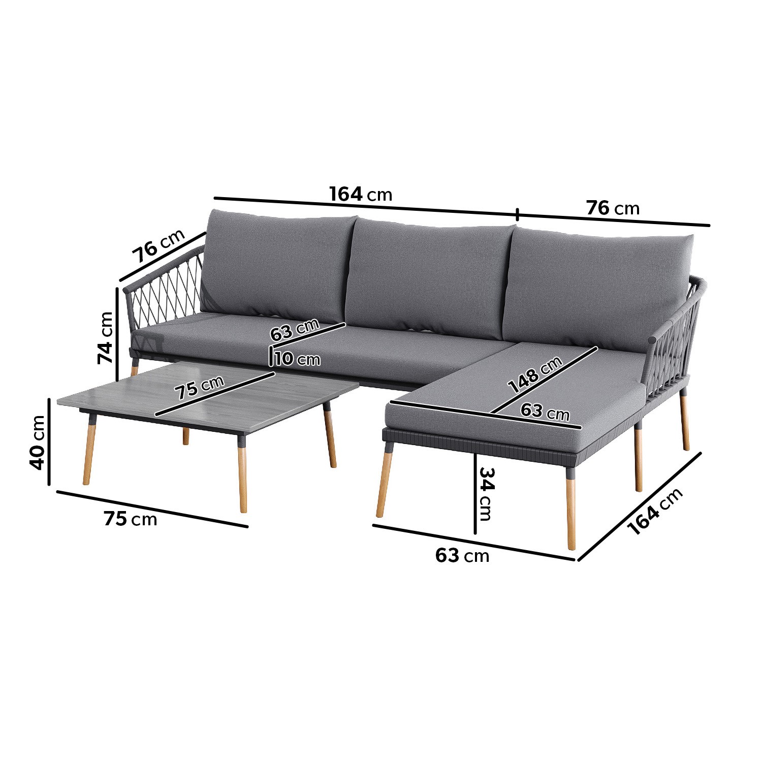 4 Seater Grey Garden Corner Sofa Set with Armchair and Table – Como