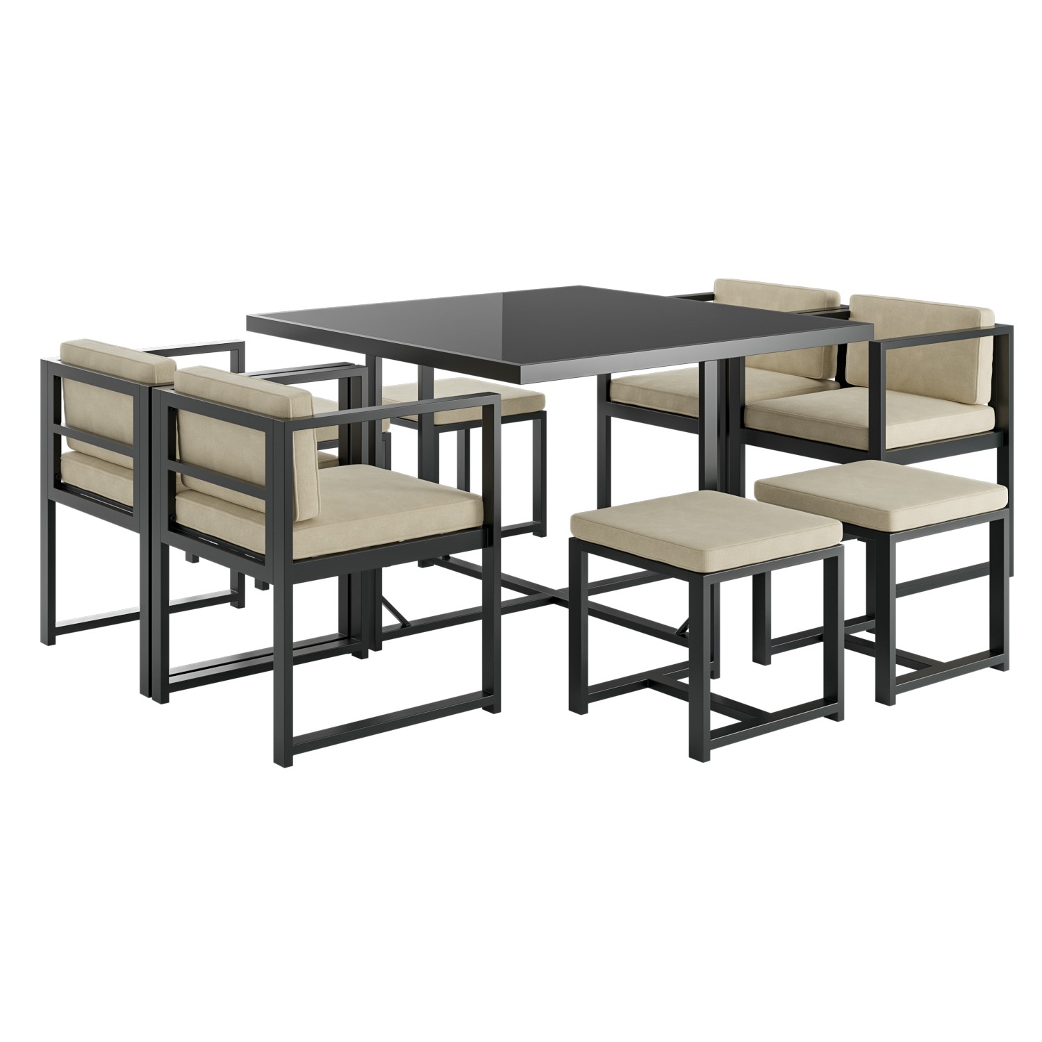 • Compact garden dining set with table, 4 chairs and 4 footstools
