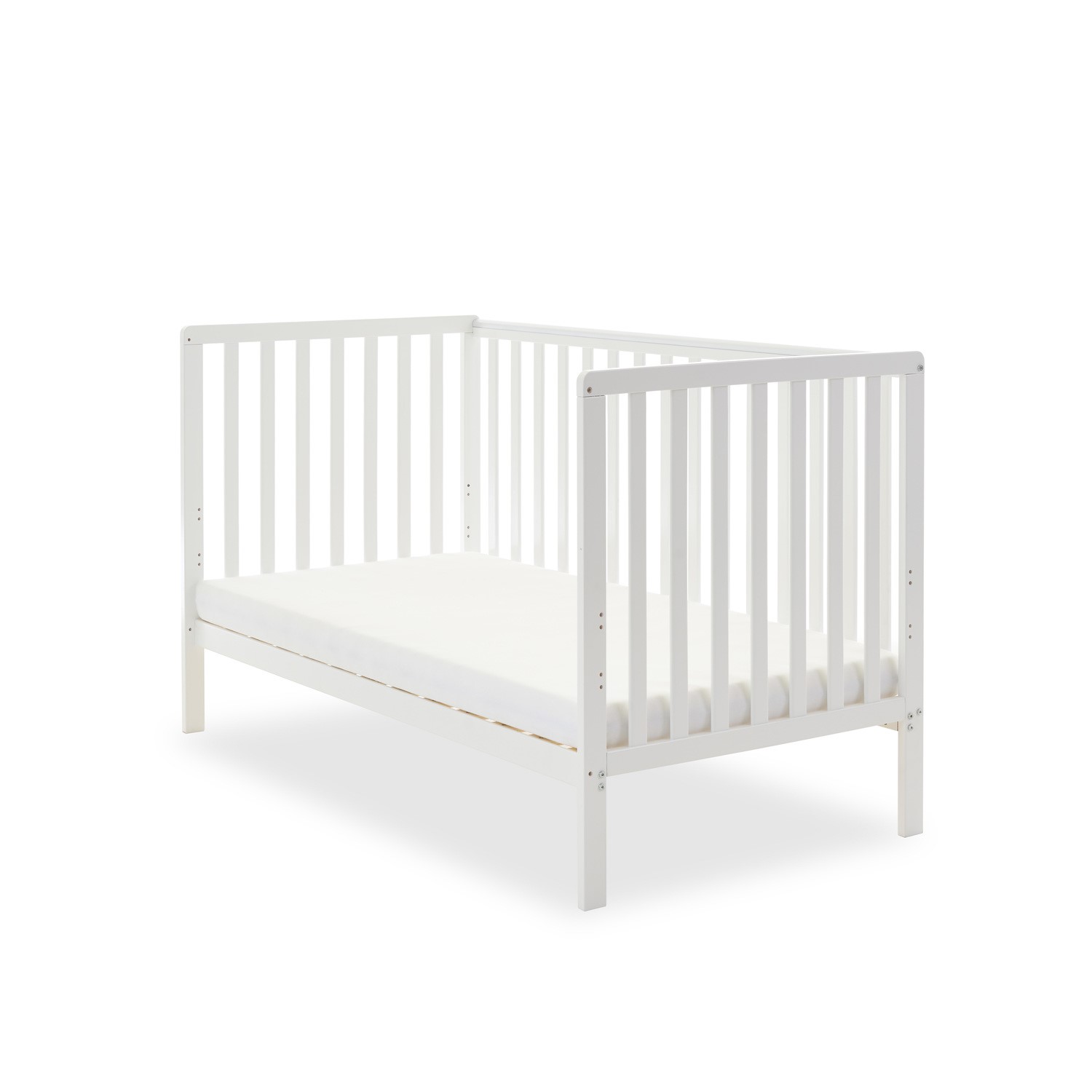 Bantam White Wooden Cot with Teething Rail – Obaby