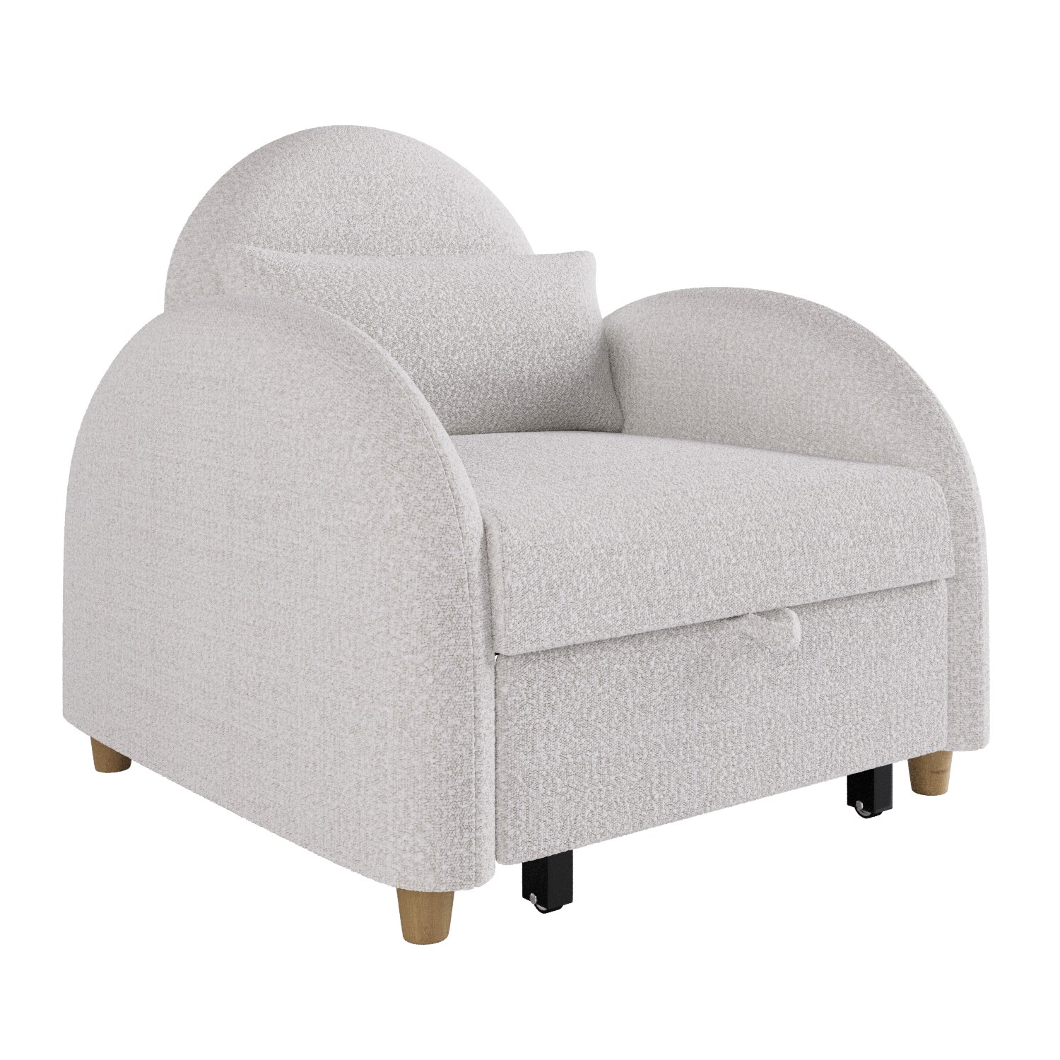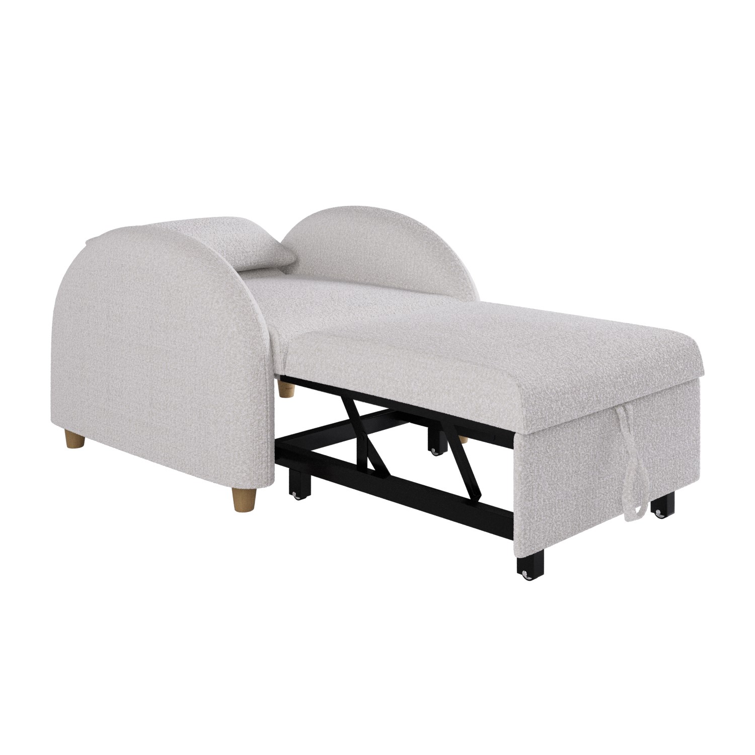 Transform your space with the Gene Beige Boucle Chair Bed. This stylish single sofa bed chair features a curved design and is upholstered in a soft boucle fabric. The foldable armchair easily converts into a comfortable chaise lounge bed, perfect for both lounging and sleeping. With its cushioned foam and reclining function, you’ll enjoy the best in comfort and support. Ideal for small spaces, this space-saving accent chair adds a chic touch while offering versatile functionality. It arrives fully assembled for your convenience.