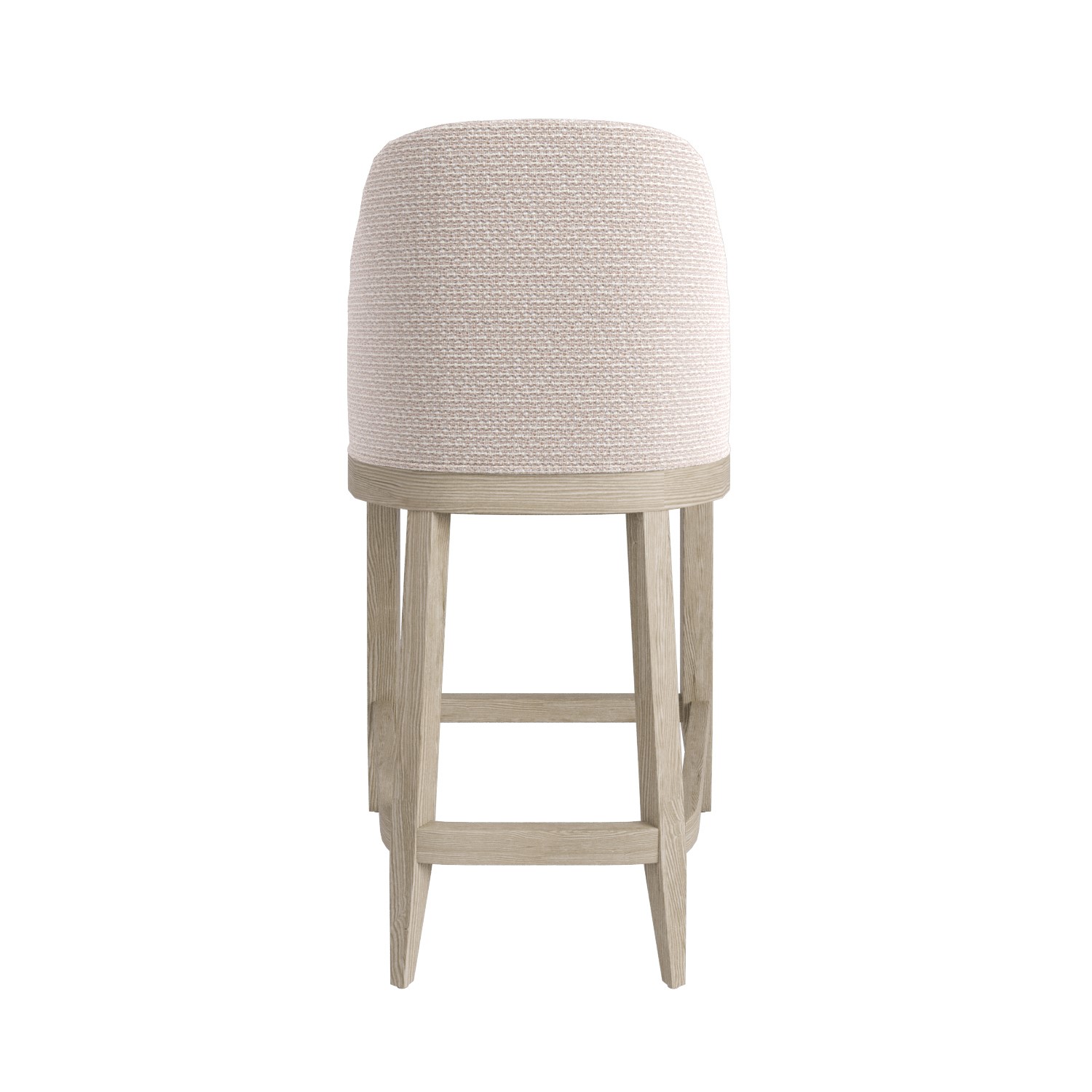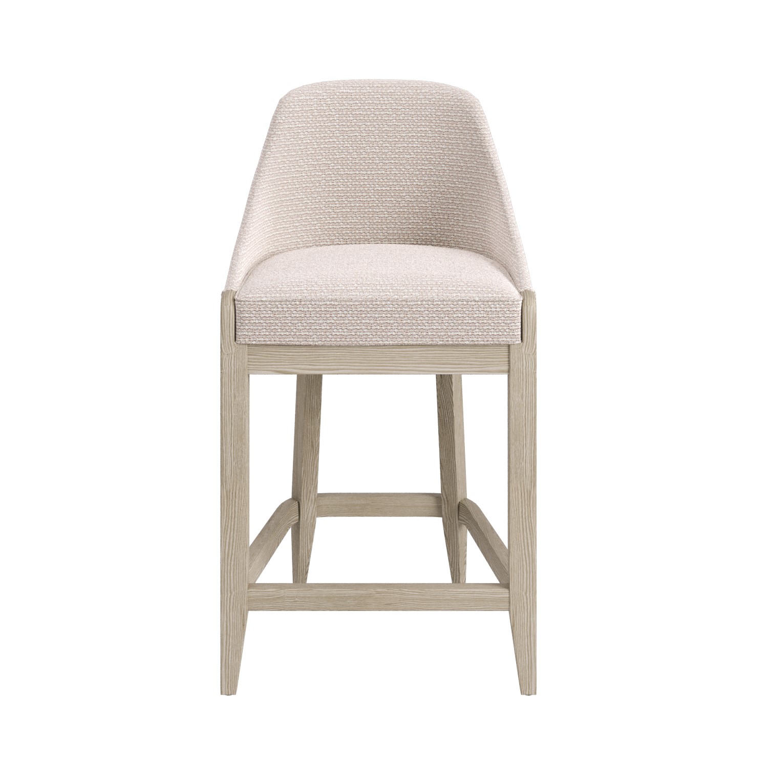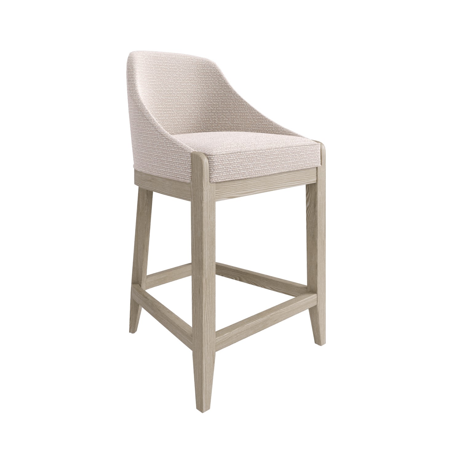 Upholstered in beige textured fabric with grey wash oak legs, the Etta kitchen counter stool is a perfect neutral addition to any kitchen area. Its foam-filled seat and curved backrest provide ultimate comfort, while the solid oak frame ensures high quality and durability. A modern take on classic farmhouse decor, this timeless piece comes fully assembled.