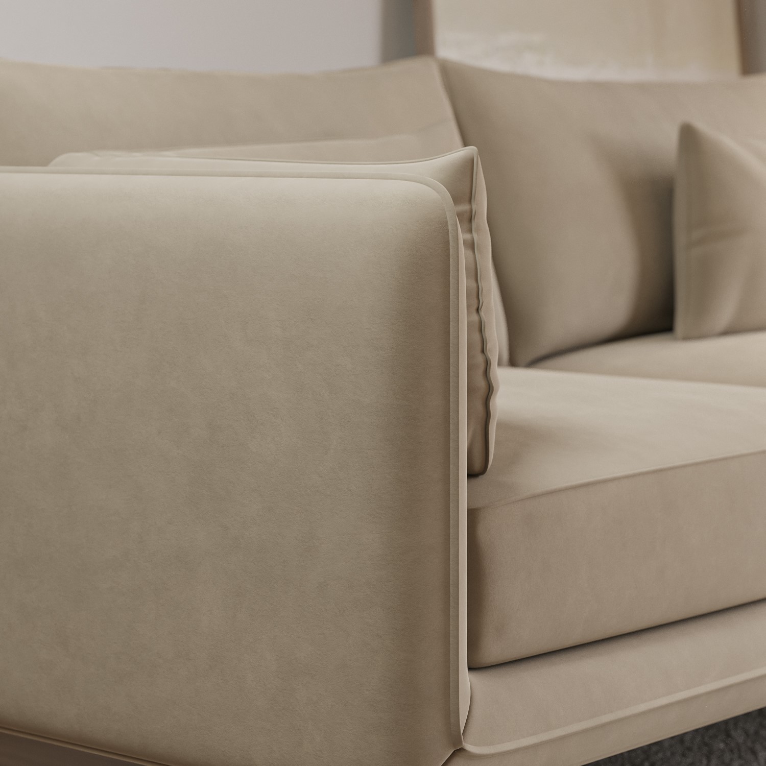 Beige Velvet 3 Seater Sofa with Square Arms – Lenny