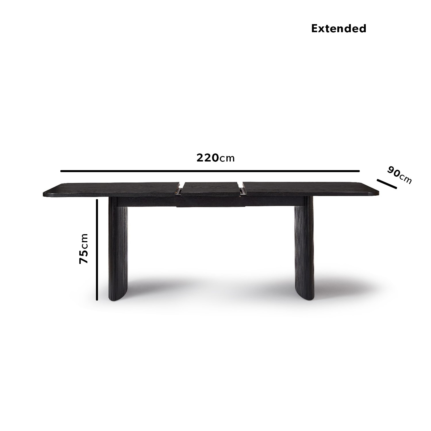 - Black extendable dining table with textured legs