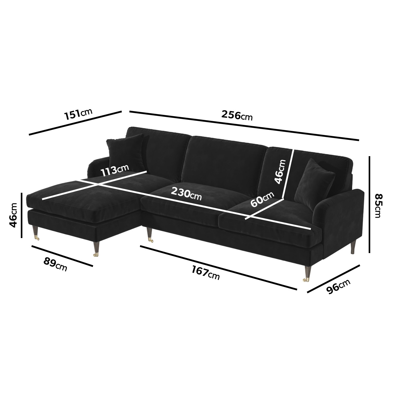 Black Velvet Left Hand Facing 4 Seater Chaise Corner Sofa – Payton