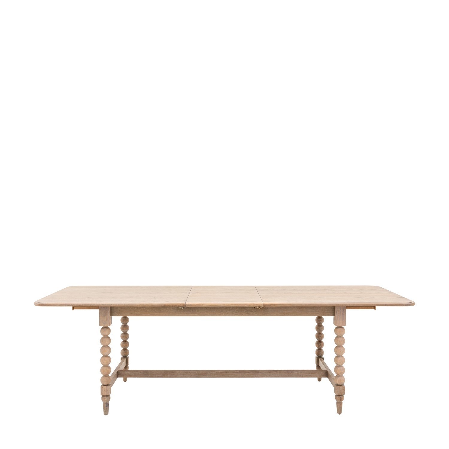Caspian House Large Oak Extendable Dining Table Set with 6 Bobbin Detail Chairs and 1 bench – seats 7 – Artisan