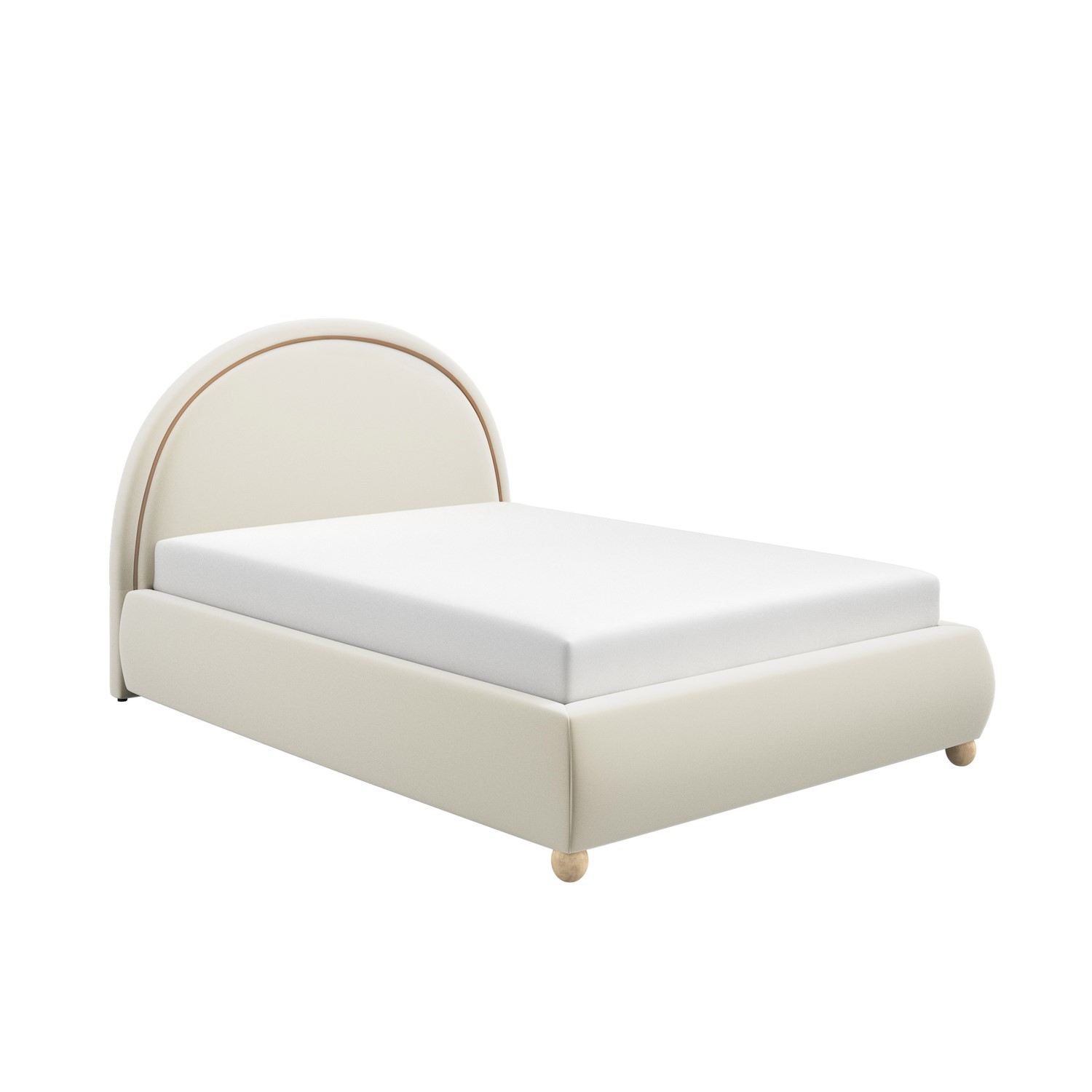 Create an aesthetic haven in your bedroom with the Nora Cream Velvet Double Ottoman Bed. This bed features a plush, curved headboard with refined piping detail, providing a comfortable and stylish focal point for your bedroom. Supporting the bed are round, light wood feet, adding a touch of natural warmth. The spacious ottoman storage makes it easy to keep things organized and out of sight and it has a solid storage base for durability. This bed fits a UK standard double-size mattress.