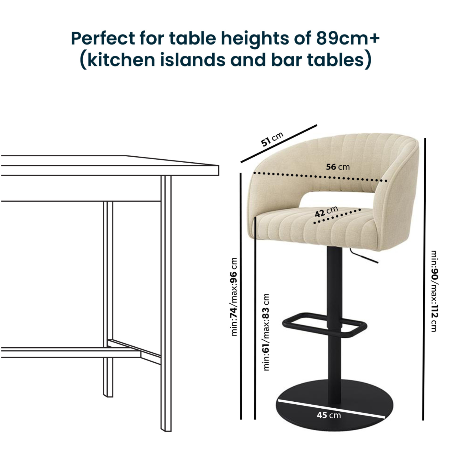 Suitable for bar tables and kitchen islands with heights of 89-109 cm, please measure before purchasing.
