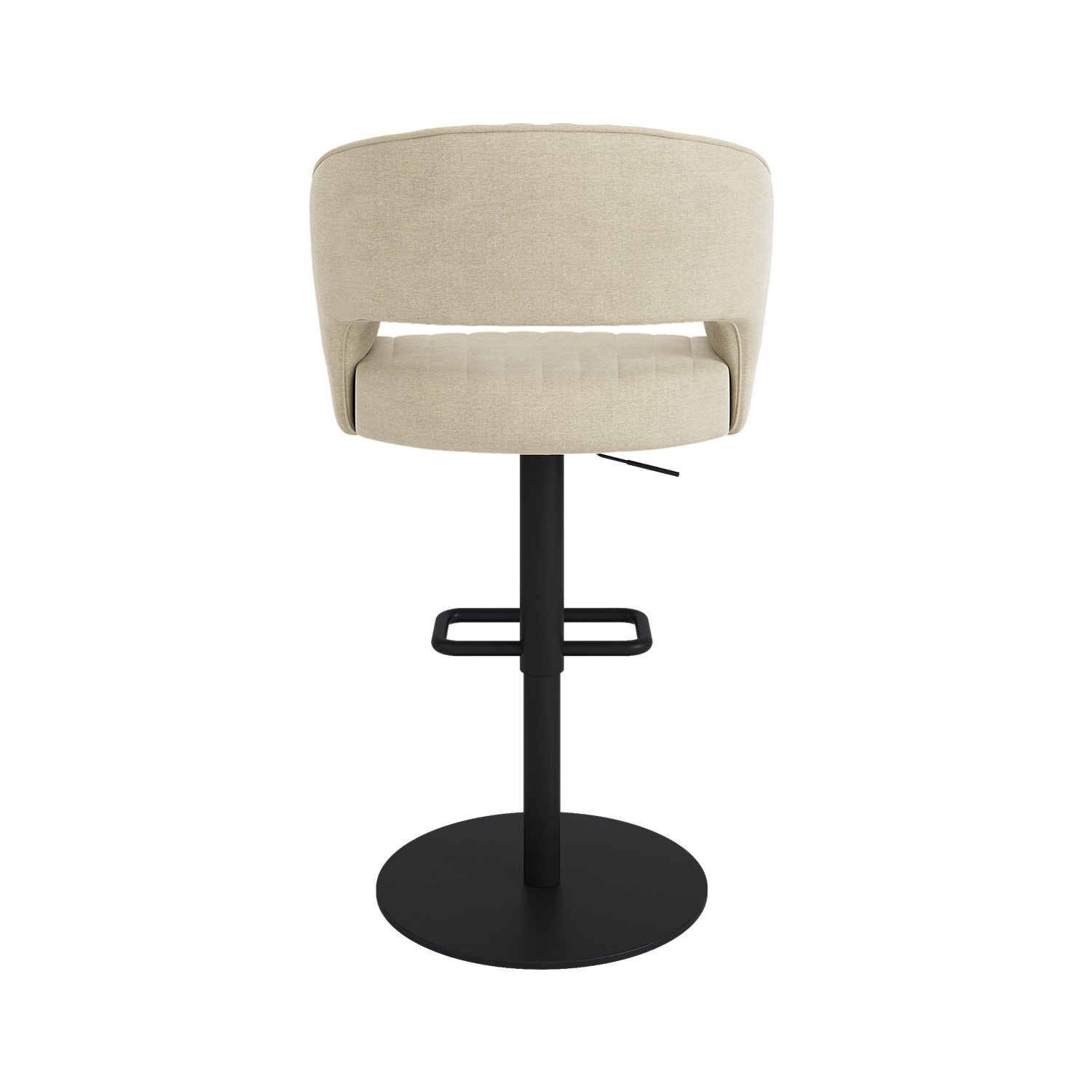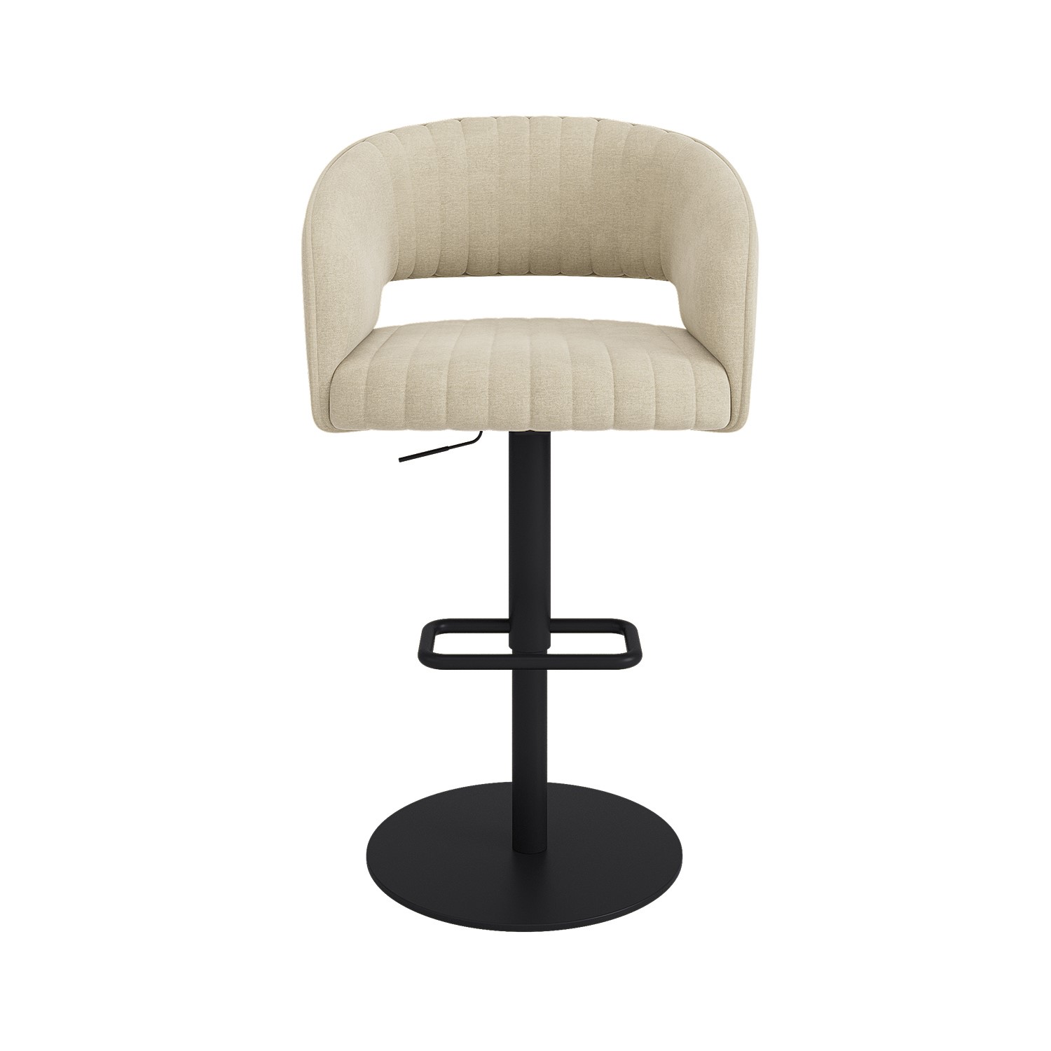 Curved Beige Upholstered Adjustable Swivel Bar Stool with Black Base – Runa