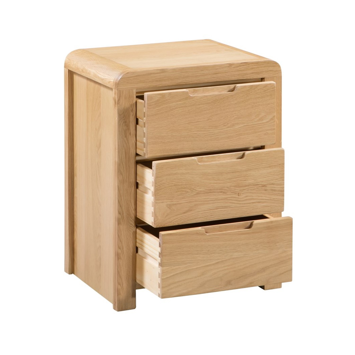 Curved Oak Modern 3 Drawer Bedside Table – Julian Bowen