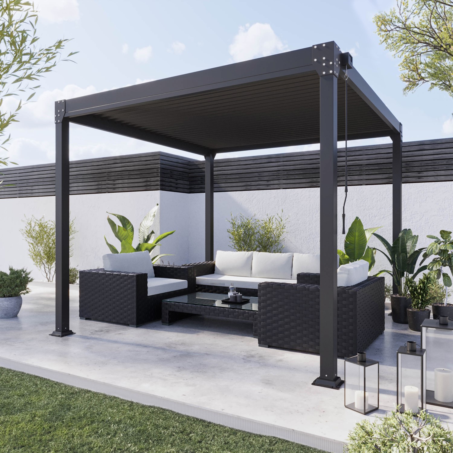 Heavy Duty Black Aluminium Pergola with Louvered Shutter Roof 3 x 3m – Como
