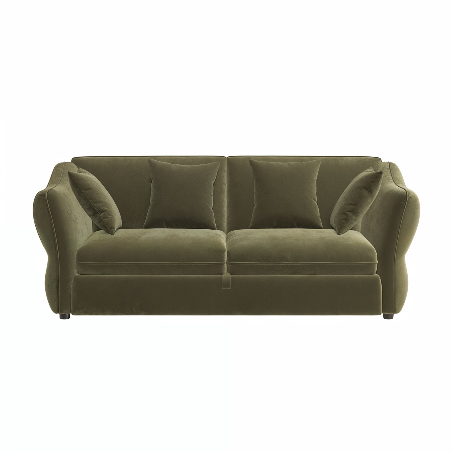 Khaki Green Velvet 3 Seater Pull Out Sofa Bed – Carmela