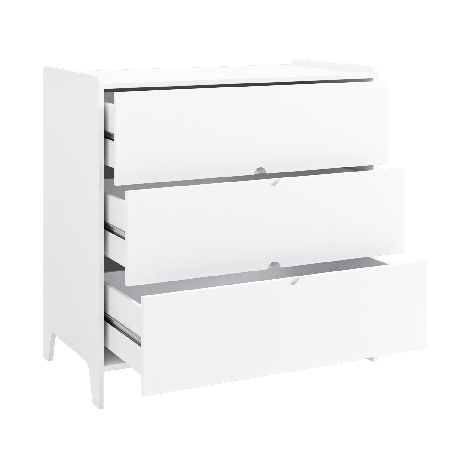 Embrace the charm of our retro-inspired Niko kids’ chest, which features three spacious drawers for easy organisation. The white Scandinavian design adds a touch of character, making it a charming addition to any child’s bedroom. Cut-out handles are easy for little hands to use and make keeping a tidy room that little bit easier.