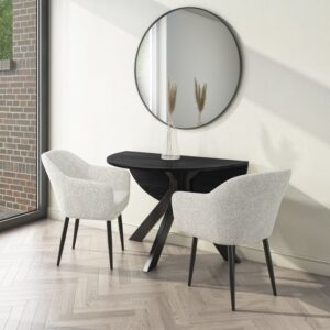 “Round Black Oak Drop Leaf Dining Table Set with 2 Cream Boucle Chairs – Seats 2 – Carson” has been added to your cart. View cart