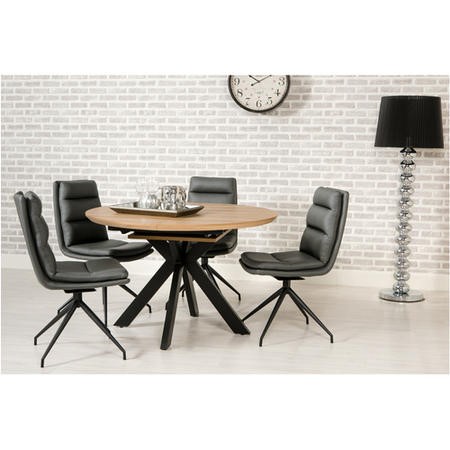 This stylish and industrial extending dining table will add a contemporary touch to any dining room. This design easily coordinates with various modern home decors and dining chairs, giving you the perfect place to comfortably entertain 4-6 guests while making an eye catching statement.