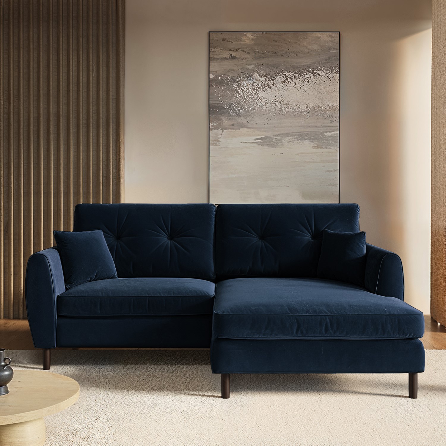 Navy Blue Velvet Reversible 3-Seater Chaise Corner Sofa – Nolen