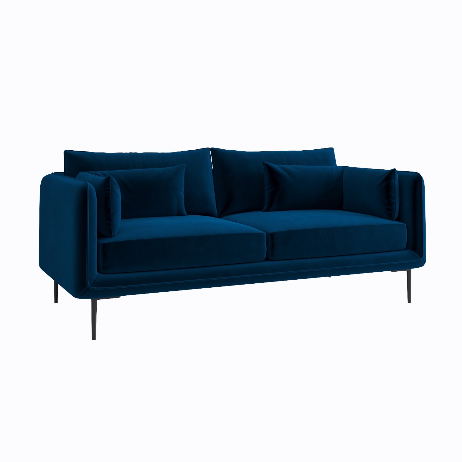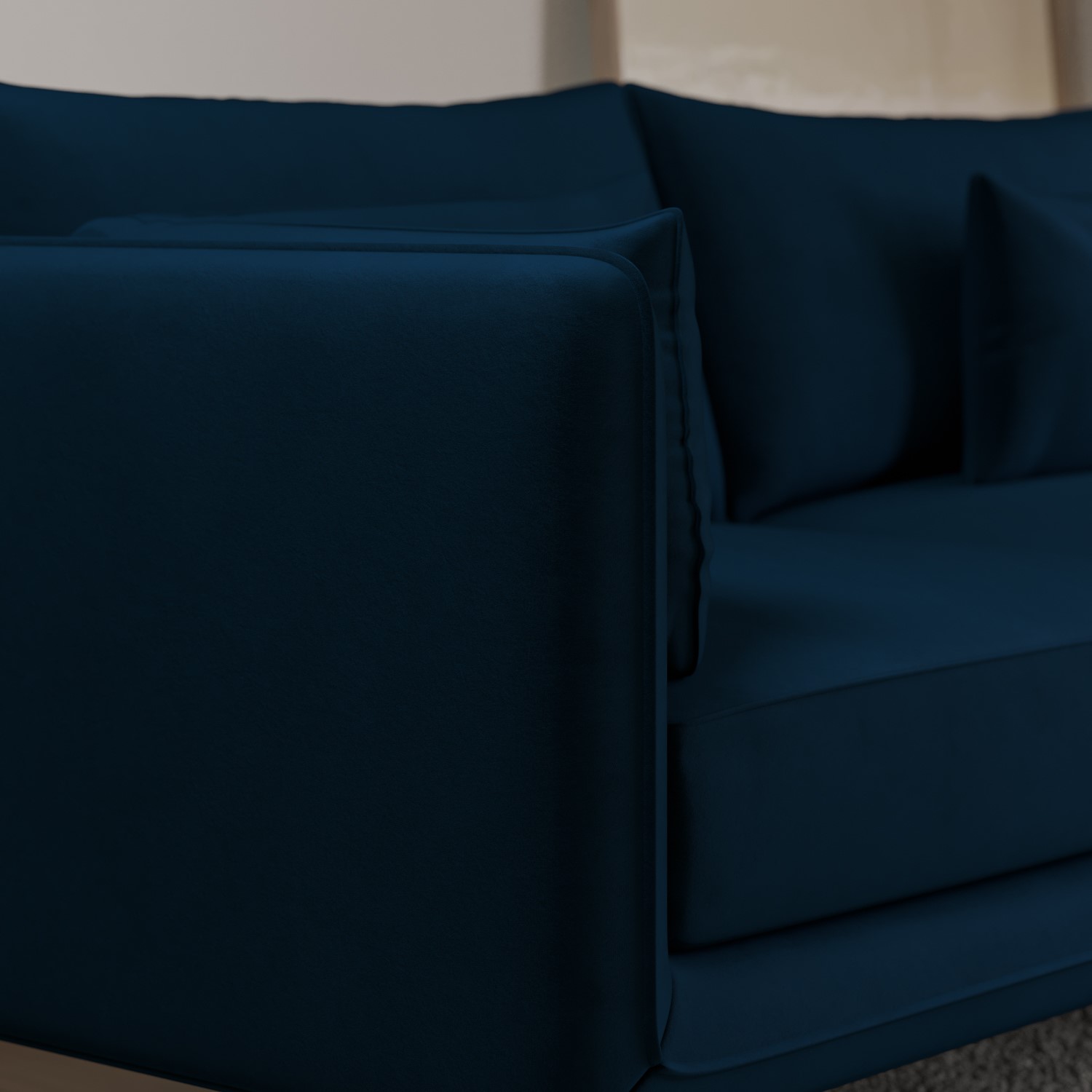 Navy Velvet 3 Seater Sofa with Square Arms- Lenny