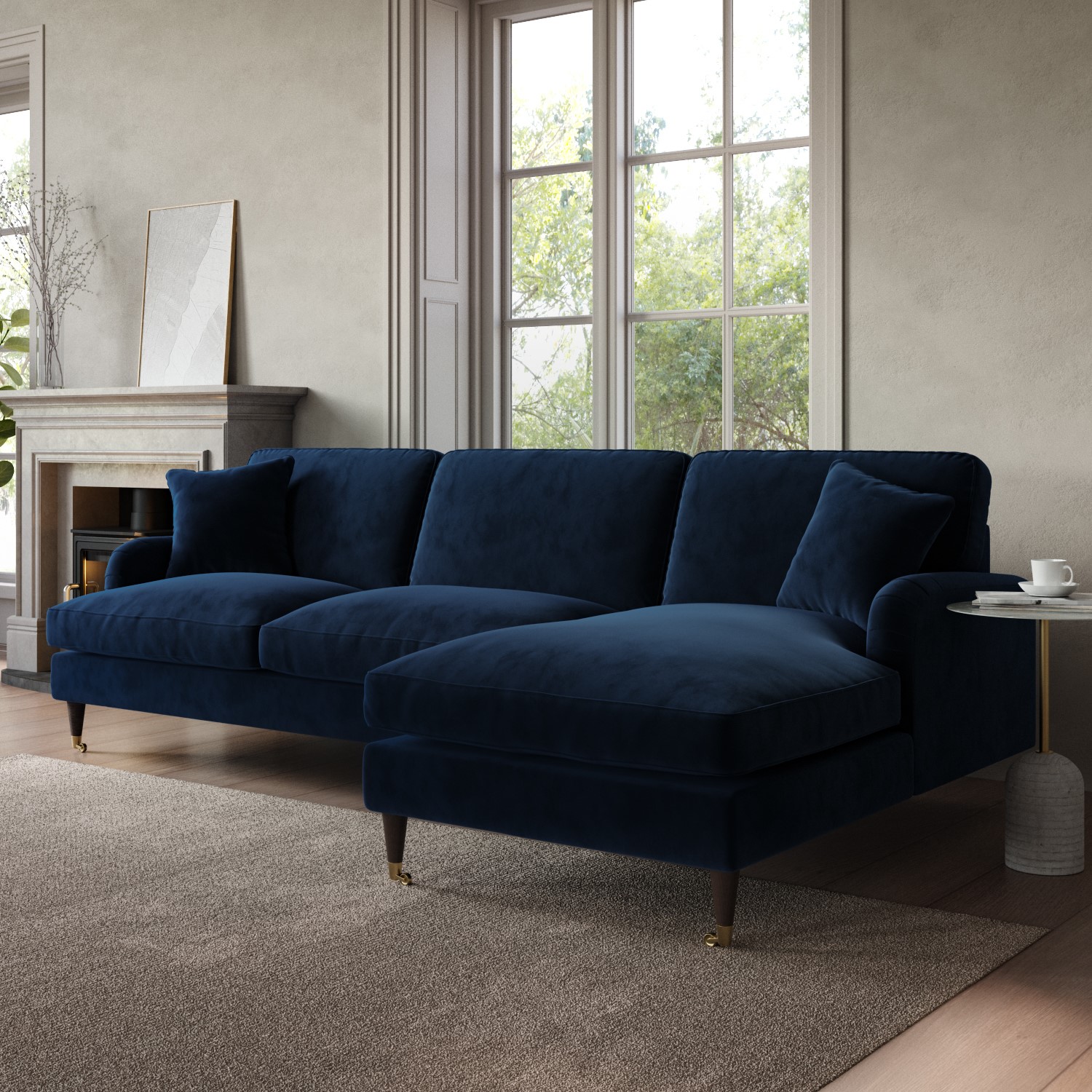 Navy Velvet Right Hand Facing 4 Seater Chaise Corner Sofa – Payton