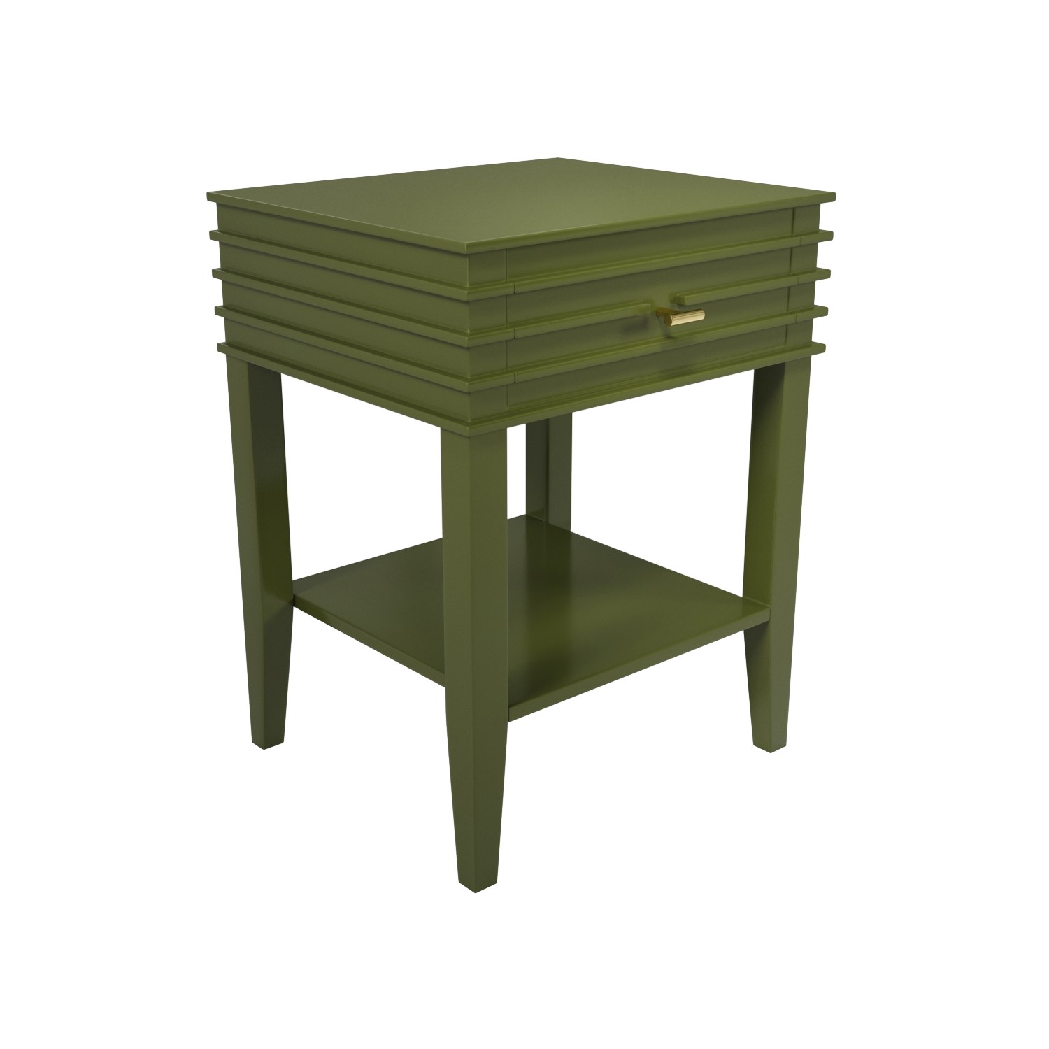 Olive Green Bedside Table with Drawer and Shelf – Midori