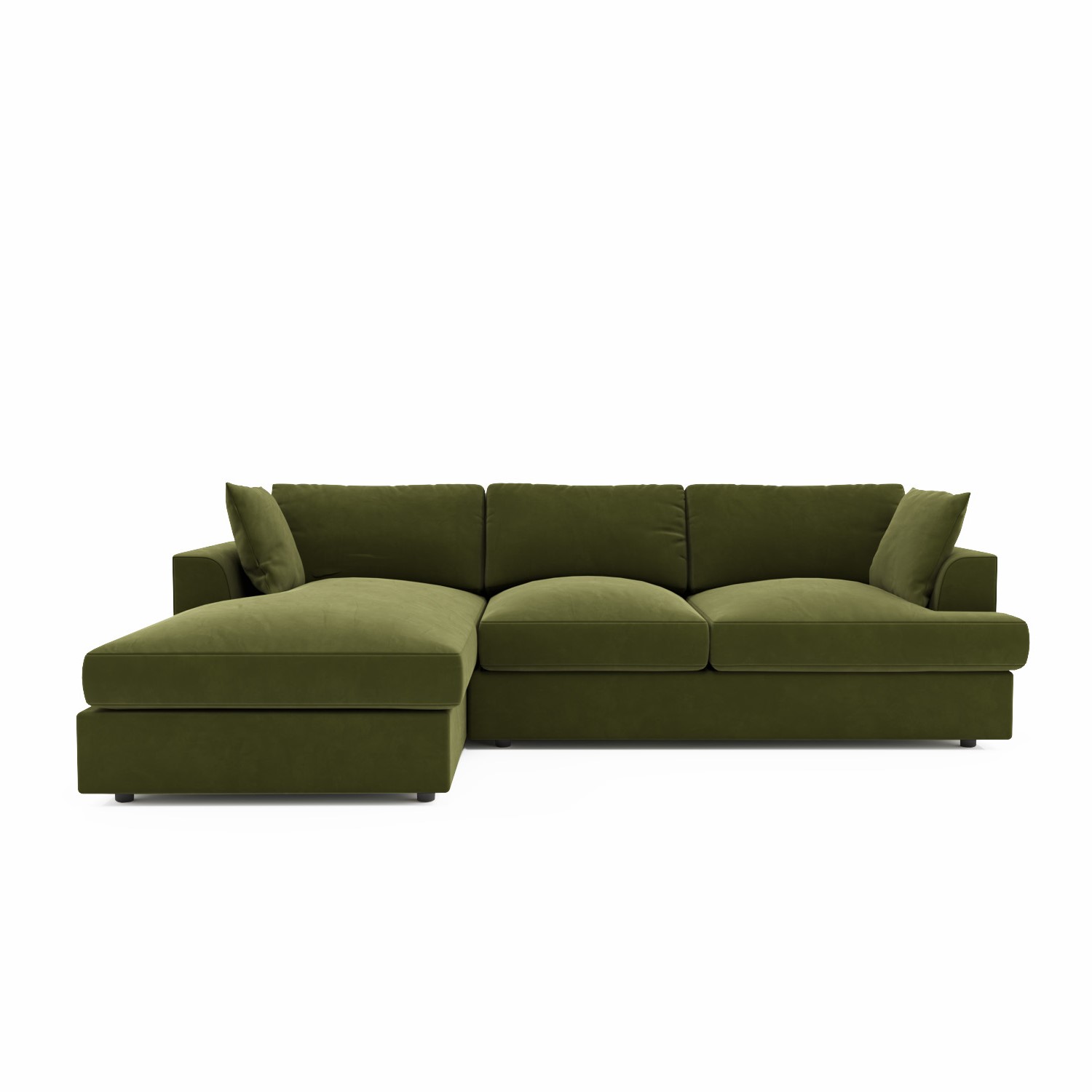 Olive Green Velvet Left Hand 4 Seater Chaise Corner Sofa – August