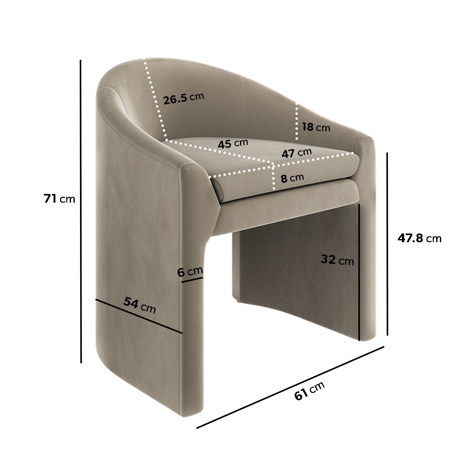 - Fully upholstered dining chair in a luxurious soft mink velvet