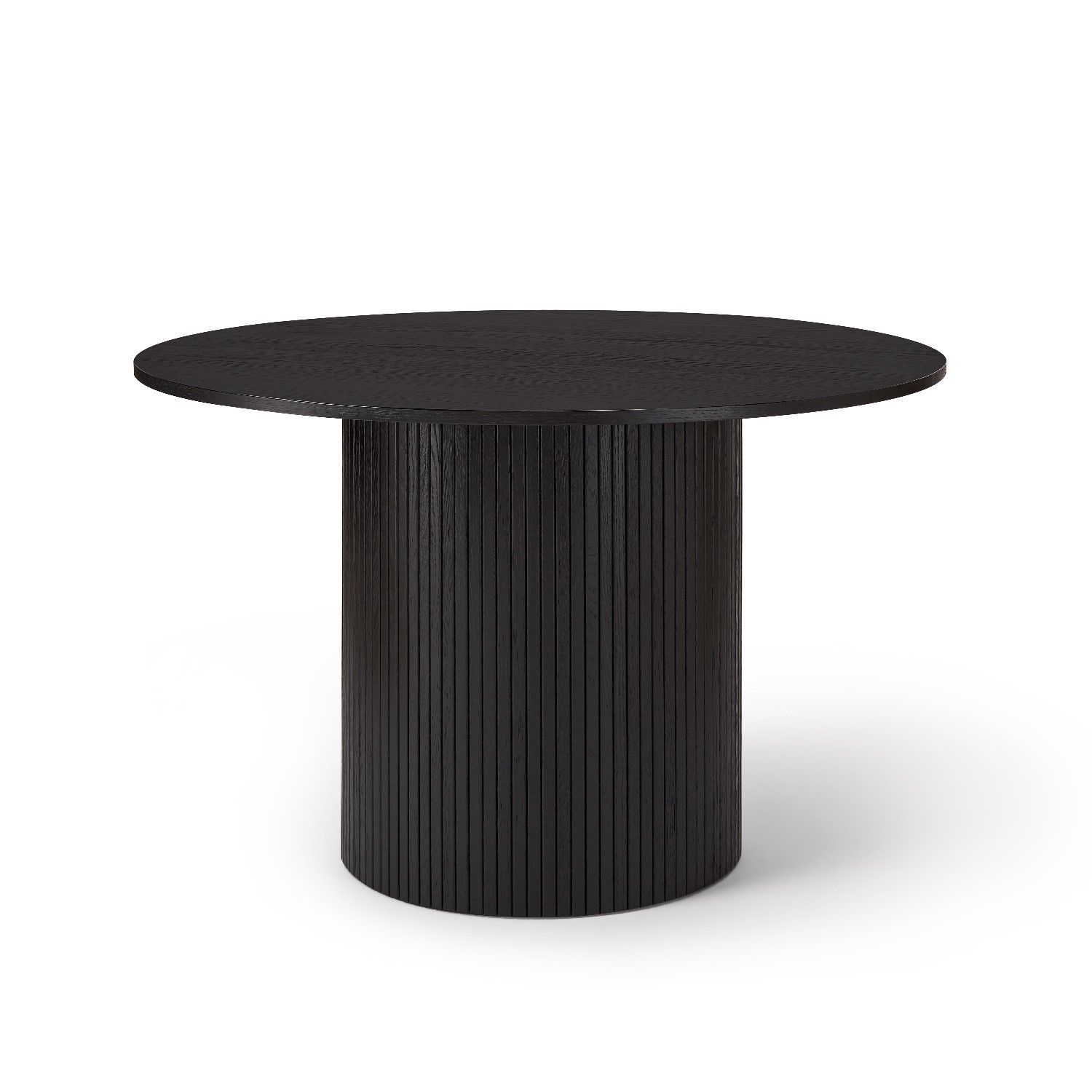 Round Black Oak Dining Table Set with 4 Upholstered Mink Velvet Curved Chairs – Seats 4 – Jarel