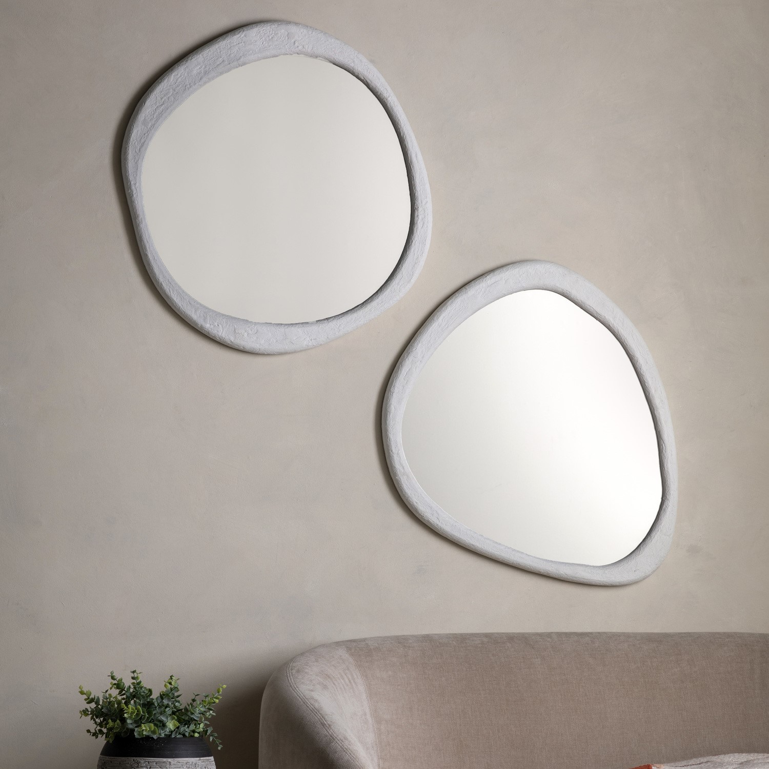 Elevate your space with the Artistic Round Mirror, a beautifully crafted piece that redefines traditional mirrors. Its wavy, irregular edges and concrete-effect frame offer a modern, industrial twist with an organic, natural feel, making it a statement feature for any room.