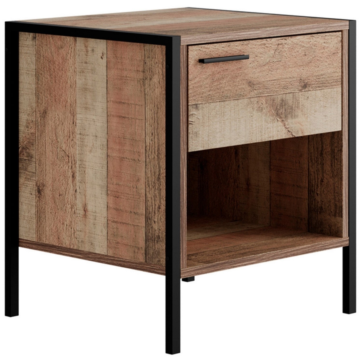 Rustic Oak Industrial Bedside Table with Drawer – Hoxton – LPD