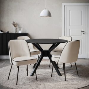 “Black Round Dining Table and Black Piped Cream Dining Chairs – Karie” has been added to your cart. View cart