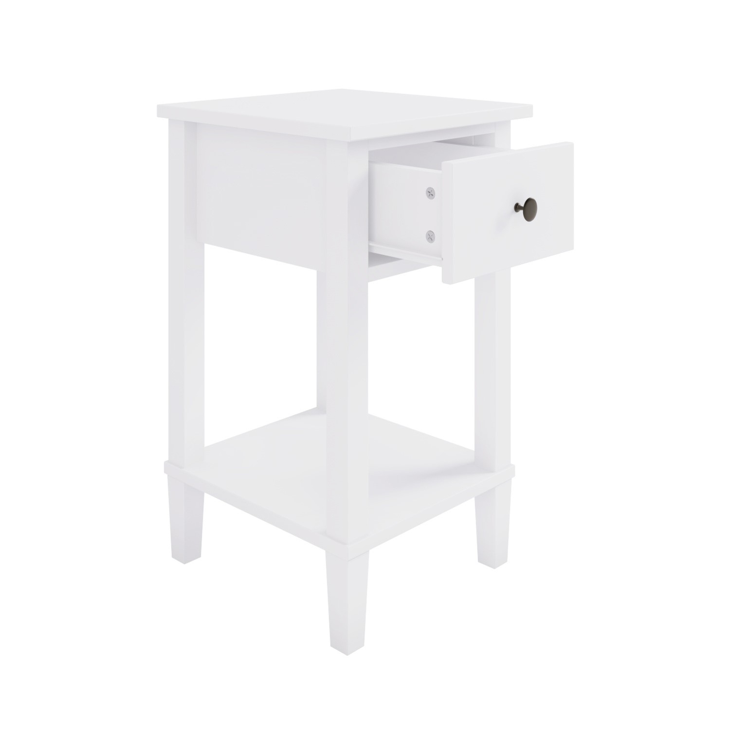 Tall White Wooden Bedside Table with Drawer and Shelf – Marlowe