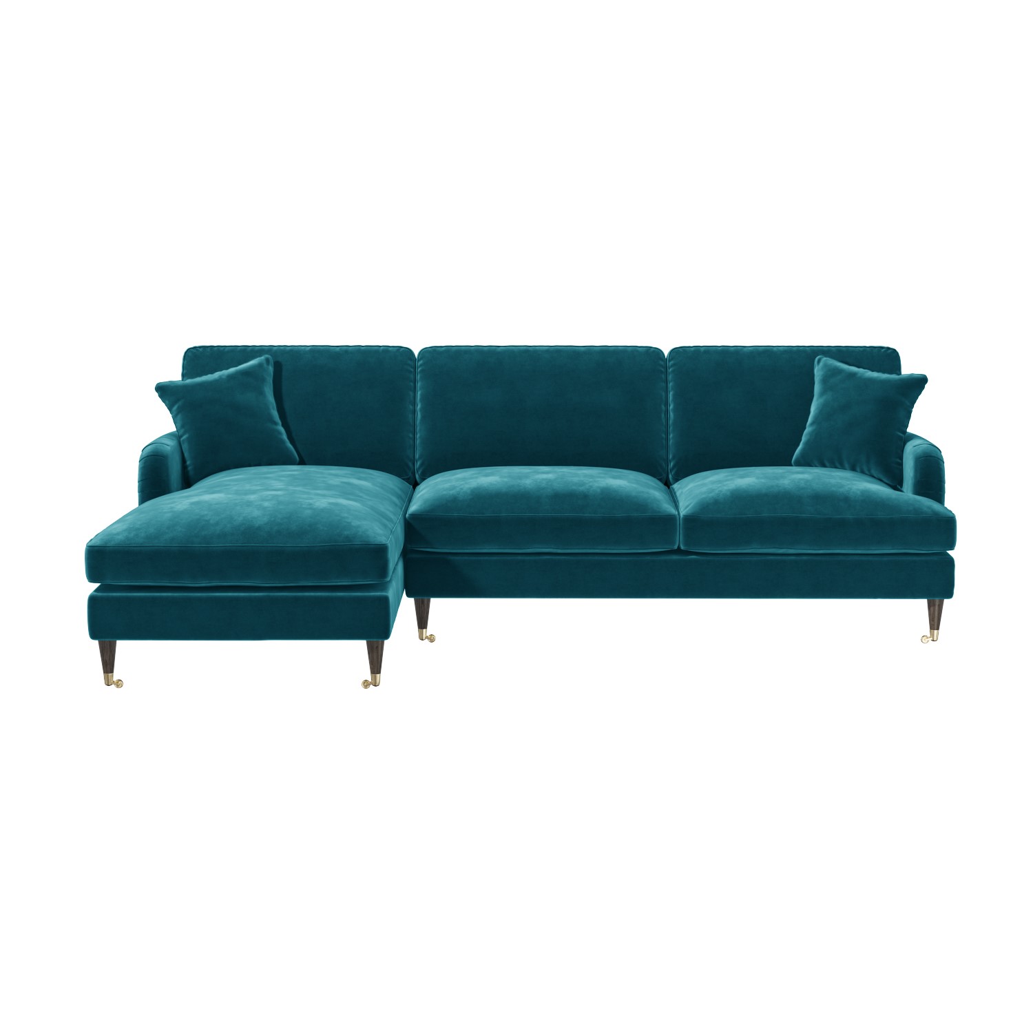 Teal Velvet Left Hand Facing 4 Seater Chaise Corner Sofa – Payton