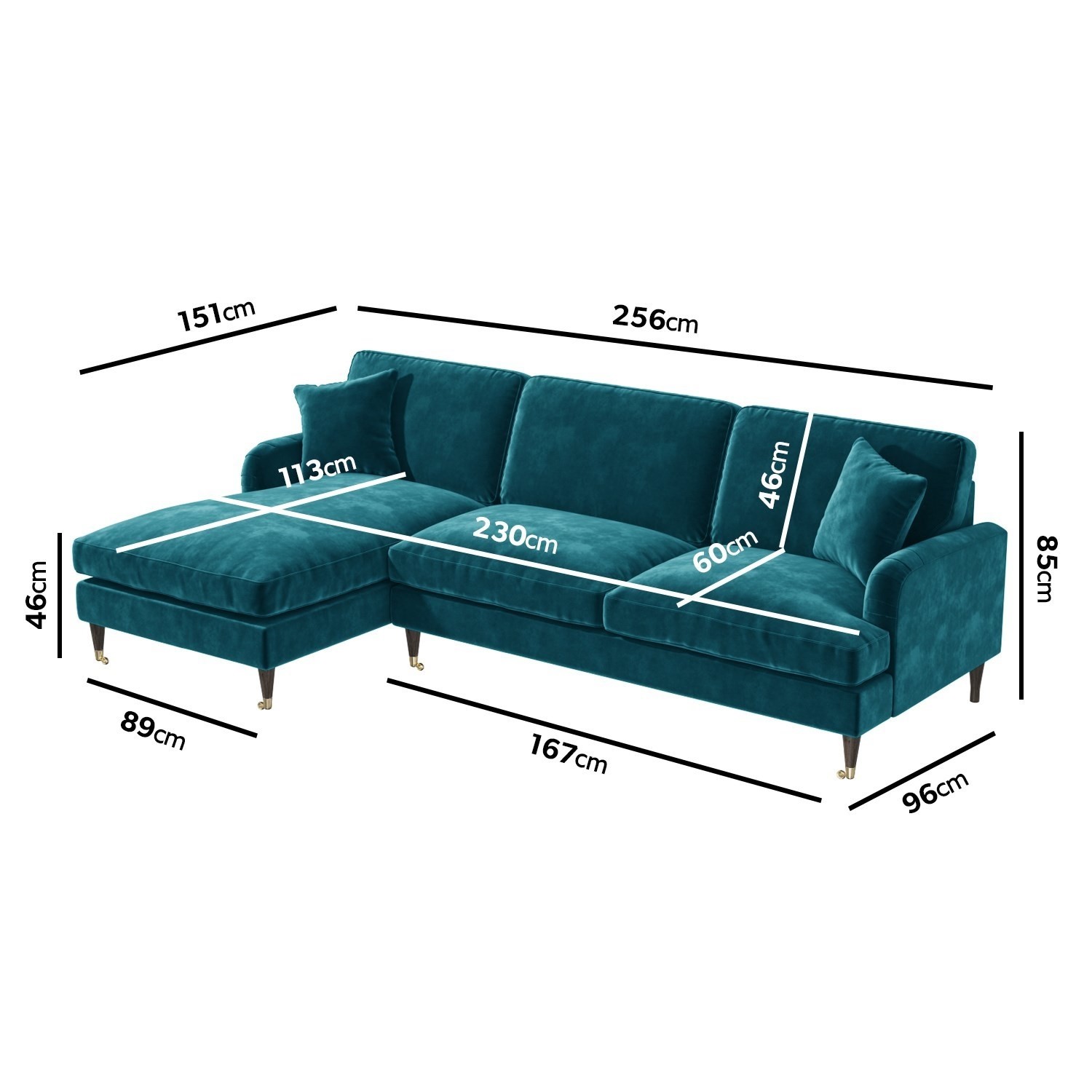 Teal Velvet Left Hand Facing 4 Seater Chaise Corner Sofa – Payton