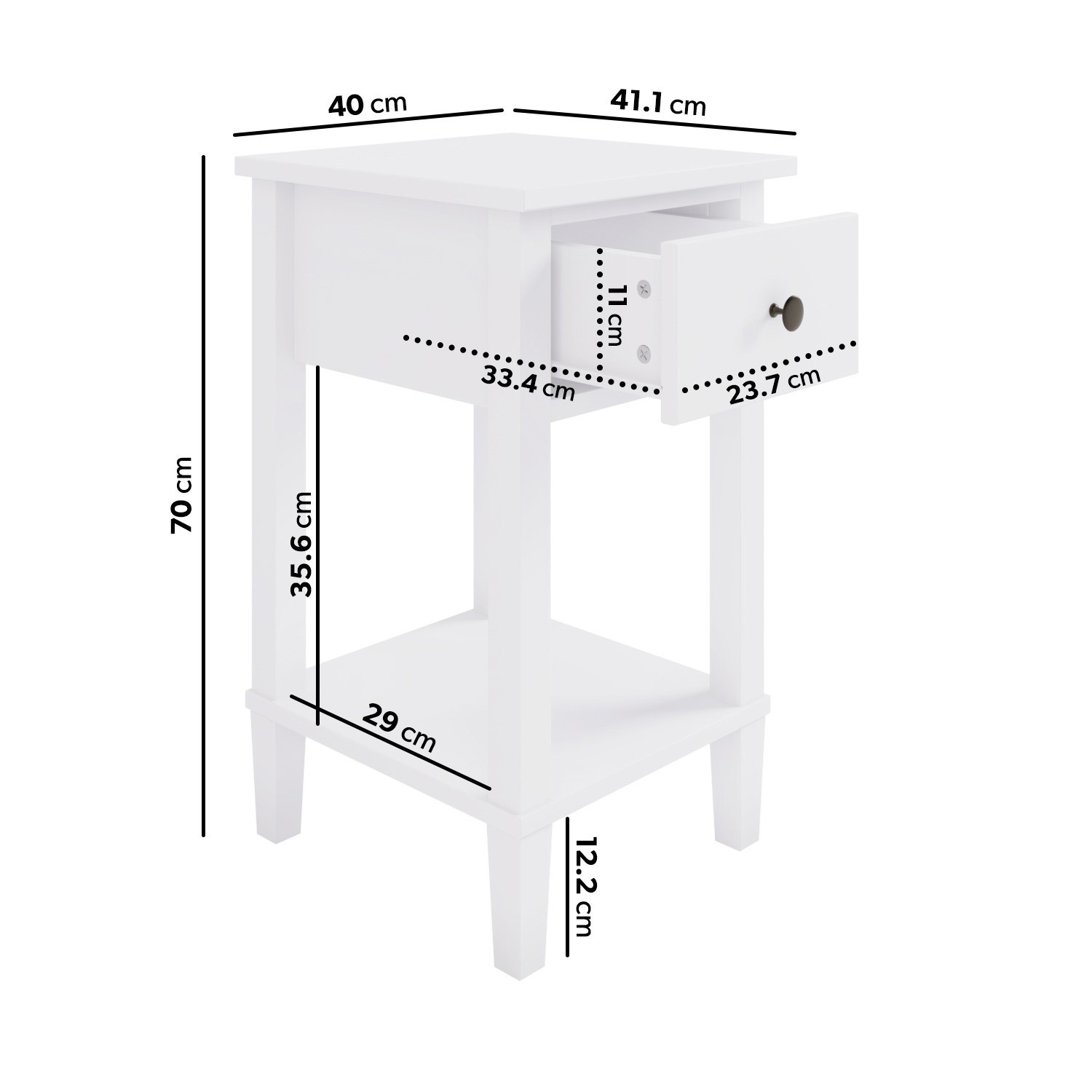 Tall White Wooden Bedside Table Drawer and Shelf – Marlowe