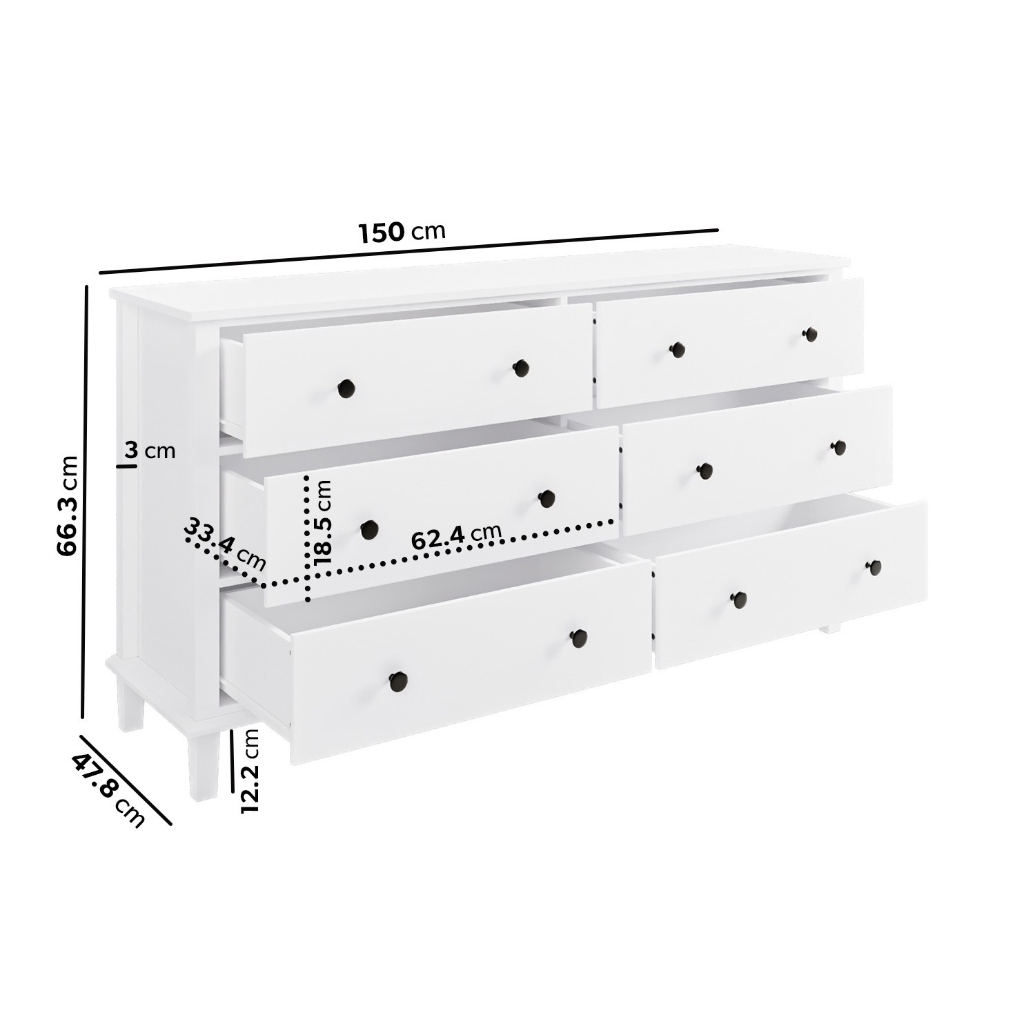 - Inner drawer dimensions: W23.7 x D33.4 x H11 cm